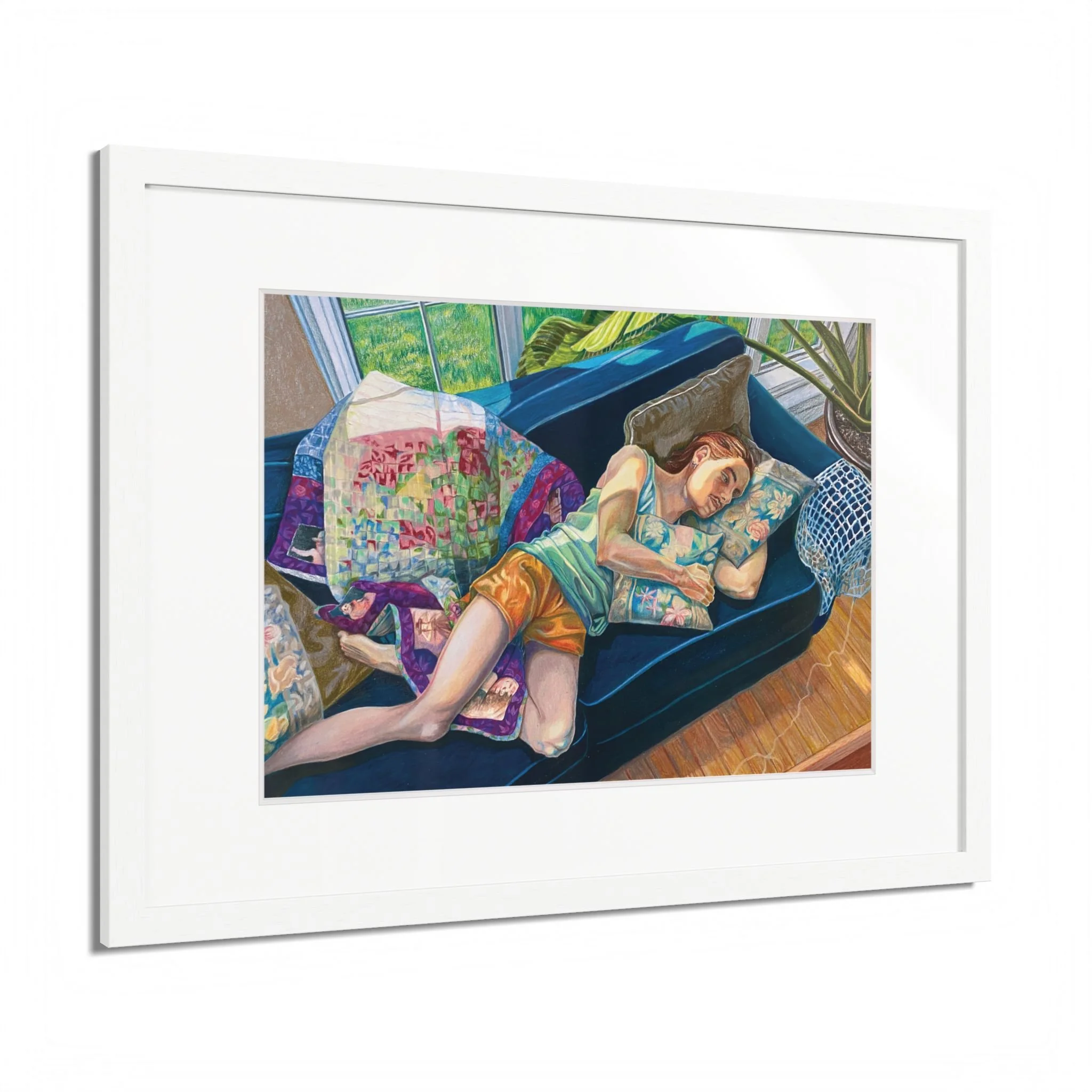 Add a touch of whimsy and luxury to your walls with this 'Saturdaze' framed poster. The hand-drawn colored pencil drawing depicts a young man relaxing on a Saturday in a dreamy state under the early Spring light. Packed with vibrant colors and floral prints, this wall art is both beautiful and calming, perfect for anyone looking to add a peaceful atmosphere to their space. Ideal for Spring decor, relaxation spaces, and art lovers.